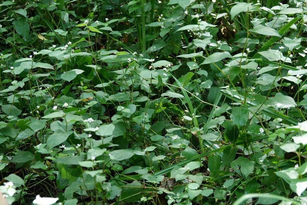 ミゾソバ(溝蕎麦) ほんのり頬を染めたような かすかなピンク色をつけて たくさんの小さな花が 待っていてくれました😉 タデ科イヌタデ属一年草 在来種 30〜100㌢、茎は中空 葉は互生、葉柄には狭い翼あり。 ここは湿地帯、木道から見下ろしています。