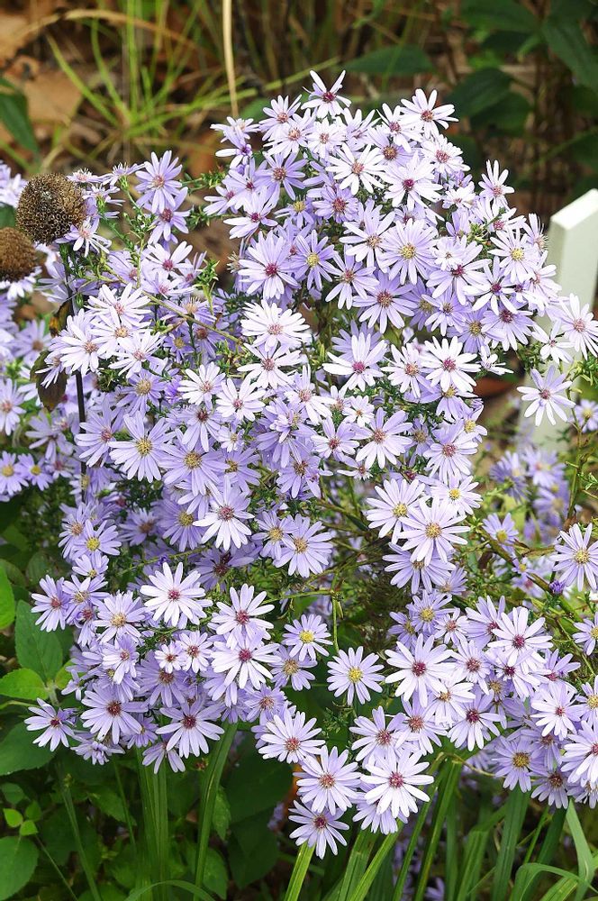 谷津坂第一公園ののはらにアスターリトルカーローが満開の秋。