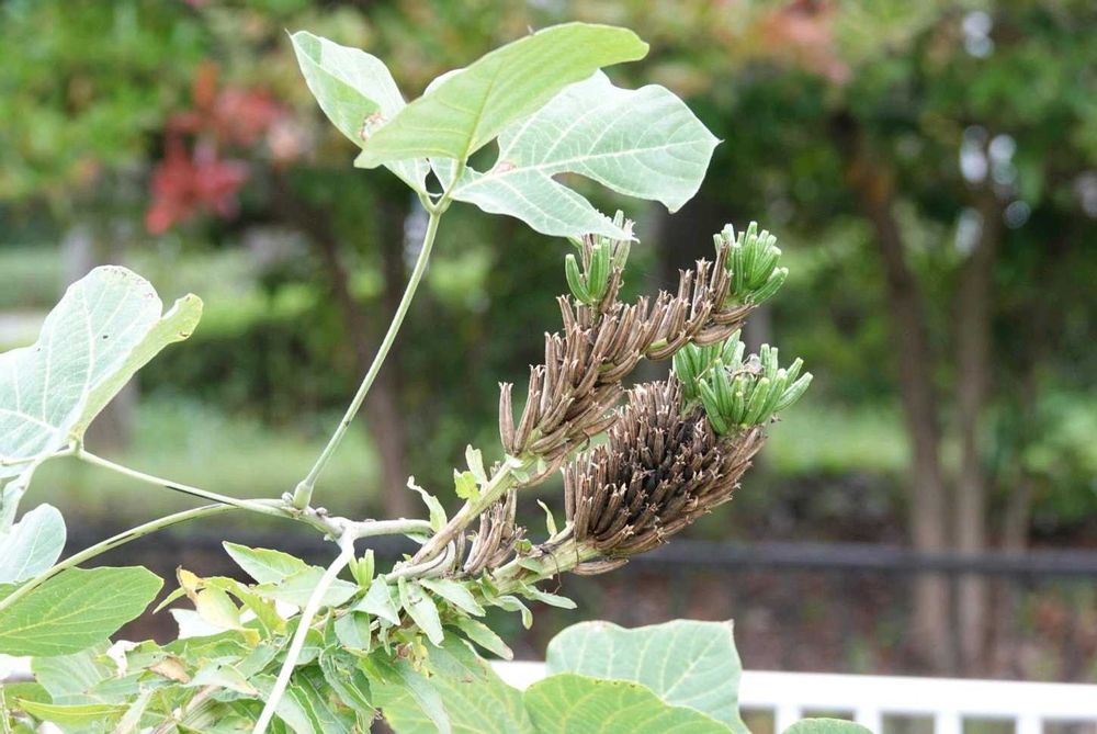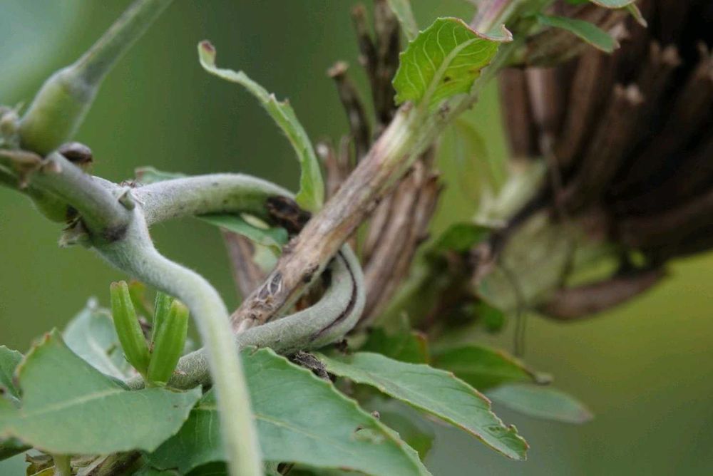 メマツヨイグサ(雌待宵草) アカバナ科マツヨイグサ属帰化種 遠目にダキバアレチハナガサかと思いましたが、近寄るとメマツヨイグサのようです。 草丈0.3㍍〜2㍍ にもなり、花後の蒴果は2〜4㌢で先が細い長楕円形。4室に分かれ1.5㍉ほどの歪なタネが入っている (松江の植物観察より抜粋引用) マツヨイグサ属は日本に14種あり、全て帰化種、在来種は無いのですね。 宵待草や月見草の別名はいかにも日本的であるのに意外でした。 かし様に教えて頂いたパイオニア植物だった事、調べて初めて知りました。 4枚目はクズが絡まる様子を拡大しました、白っぽいのがクズ、茶色っぽいのがメマツヨイグサです。 どちらも木質化したような太さ。闘いを挑んだクズが少し優勢のように見えました。 朽ちるまで生き延びる闘いは続くよう……