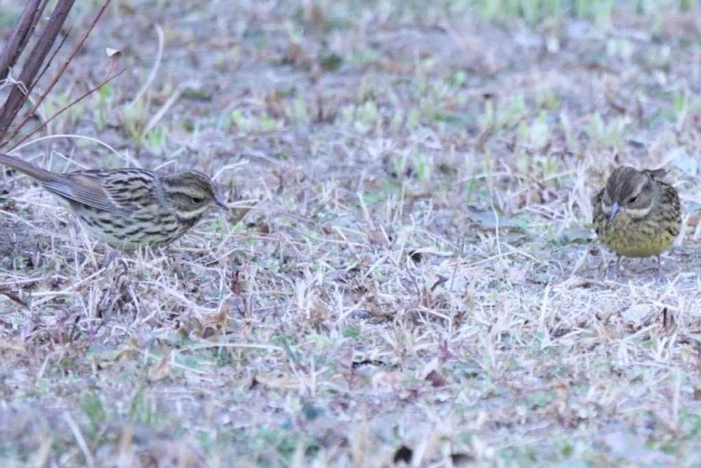オオイヌノフグリ 昼過ぎの散歩で漸く開花に会えました。 朝早くには開かないようです。 たくさん見られるようになったアオジ 小さな群れで地面を啄み食べ物を探していました(4枚目) ウグイスは今季はじめまして〜 ウグイス色とは言えない地味な色(5枚目)