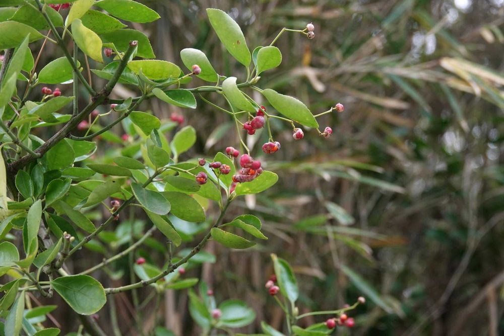 山茶花は椿にバトンタッチの時期 長く長く楽しませてもらいましたが…… これはどうやら椿ですね! うさこさんから ぽたっとおちてる花から椿と教えて頂きました。早咲きの椿でしょうか 訂正させて頂きます。 マサキはたくさんの赤い実を付けています。ニシキギ科なのでニシキギの実に似ています。雌雄異株だけど赤い実があるから見つけられる地味さ。雄木を認識していなかったかも。