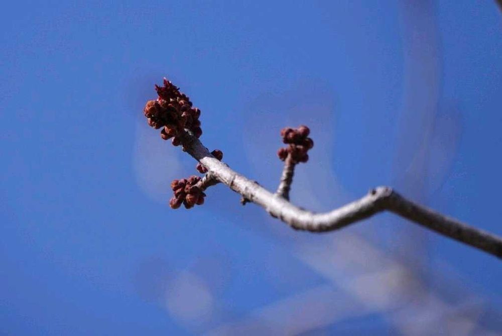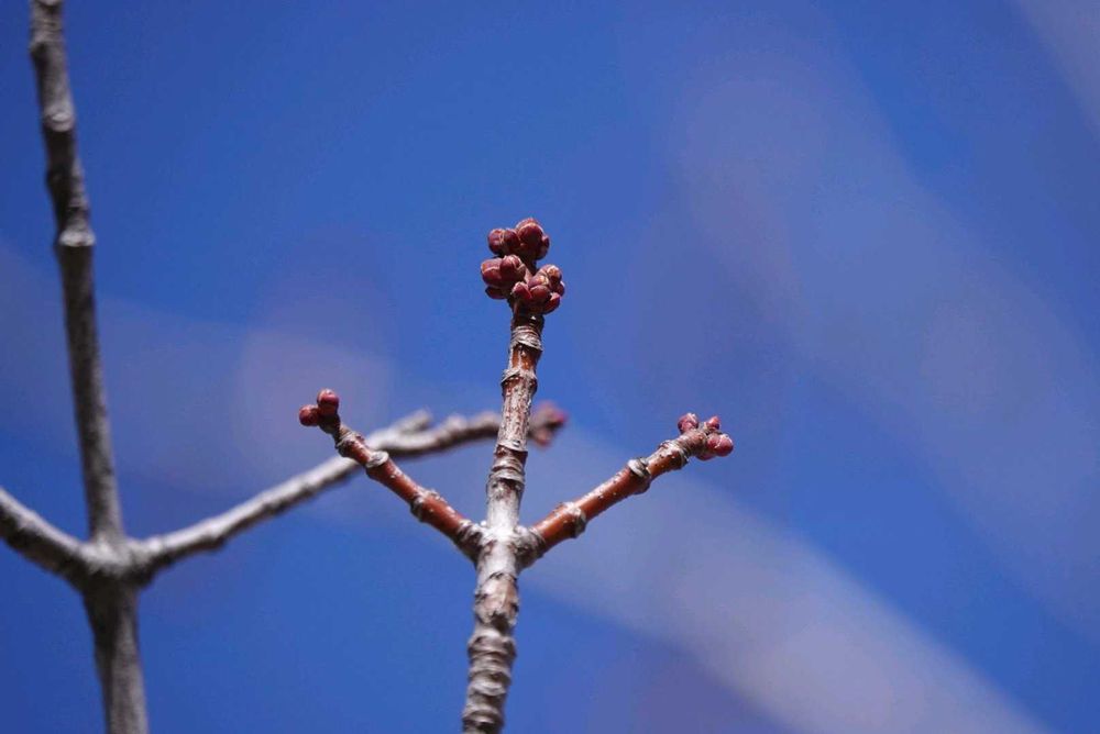 ハナノキ(花の木) 近くの公園のハナノキ 早くから冬芽葉痕を探したけれどどの木がハナノキなのか分からず終い。 漸く他の木々に葉っぱが出揃い、紅いこの冬芽に違いないと思えるようになりました。春に紅葉のような真っ赤な葉っぱと花を咲かせるハナノキ。これからが楽しみです。