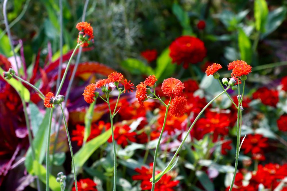 カカリア (キク科) 別名 ベニニガナ、エフデギク 一年草 原産地 東インド🇮🇳 夏から秋の終わりまで、長い花茎を伸ばし その上に飾りボタンのような小さな花を次々に咲く咲かせます。 横浜 里山ガーデンにて撮影📷