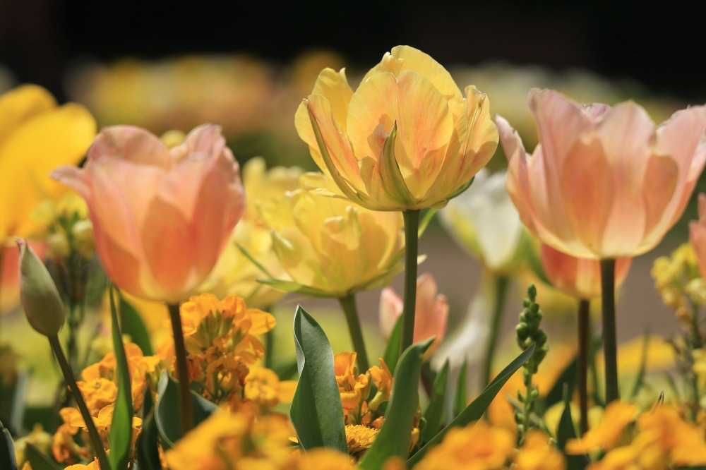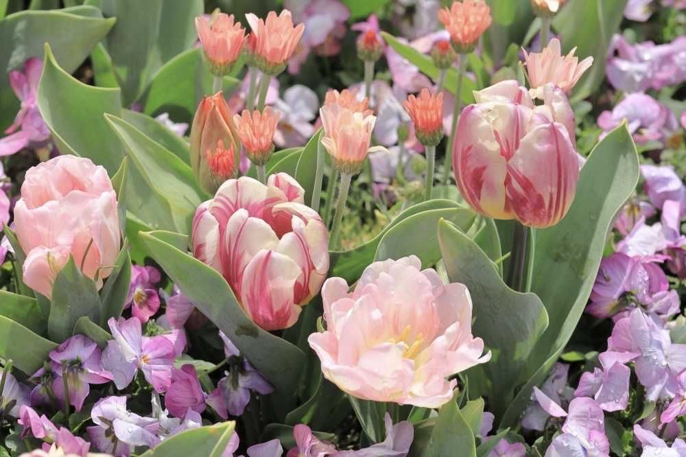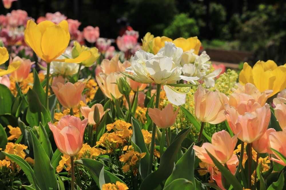 多彩なチューリップ チューリップだけでなく複数種類の花々が咲いているので昭和記念公園公園やベイスターズの本拠地のチューリップ畑とは一味違います。