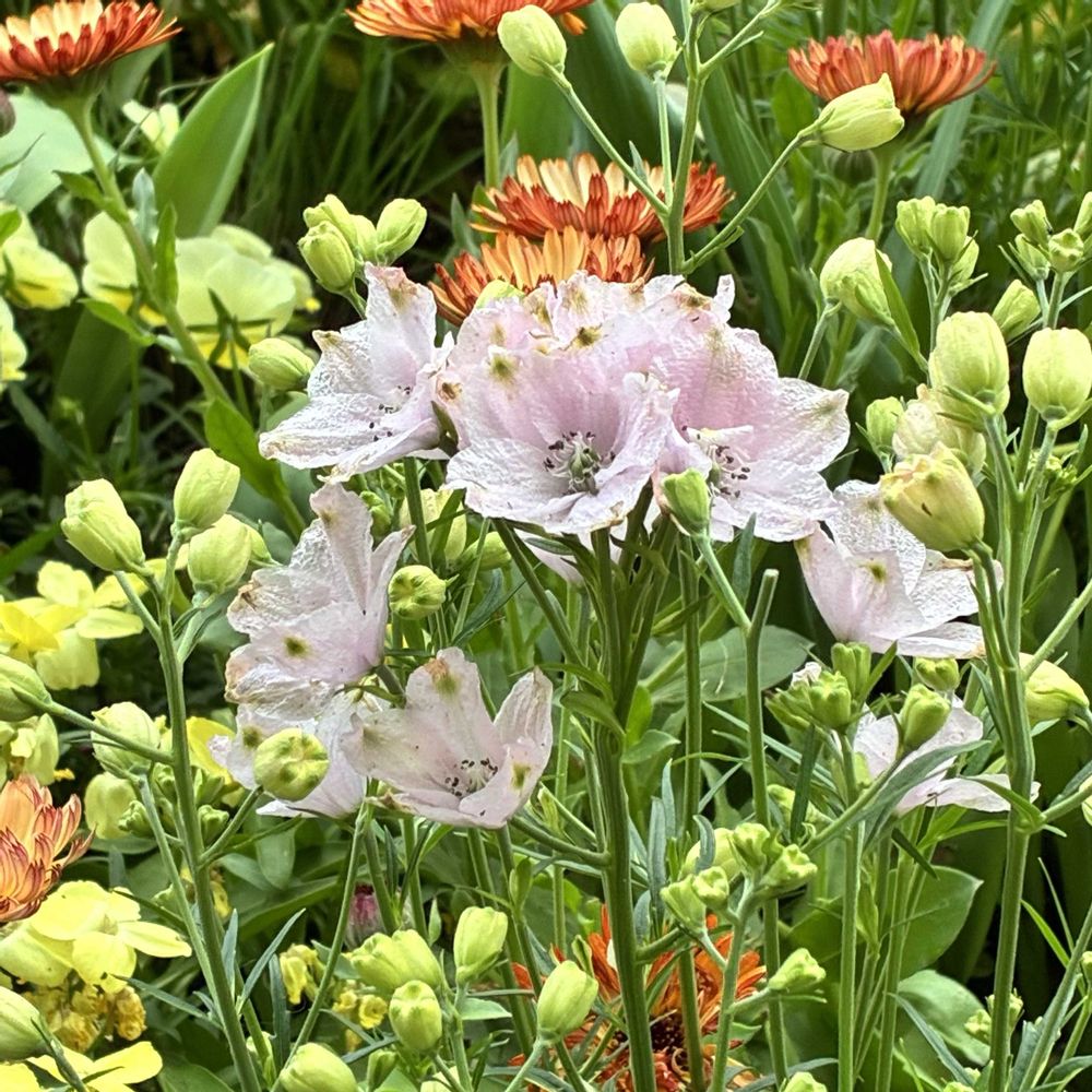 ネギ坊主が開いたみたいな花だなぁ〜と思いました。 そしたら、ヒガンバナ科 ネギ属の オオハナビニラとも言うらしい。 確かに花火みたい。 まだ完成形じゃないのね ローズパープルの星形の花が咲くなんて❣️ 花が咲いて所見てみたいな⭐︎⭐︎ 里山ガーデンは、色とりどり❤️