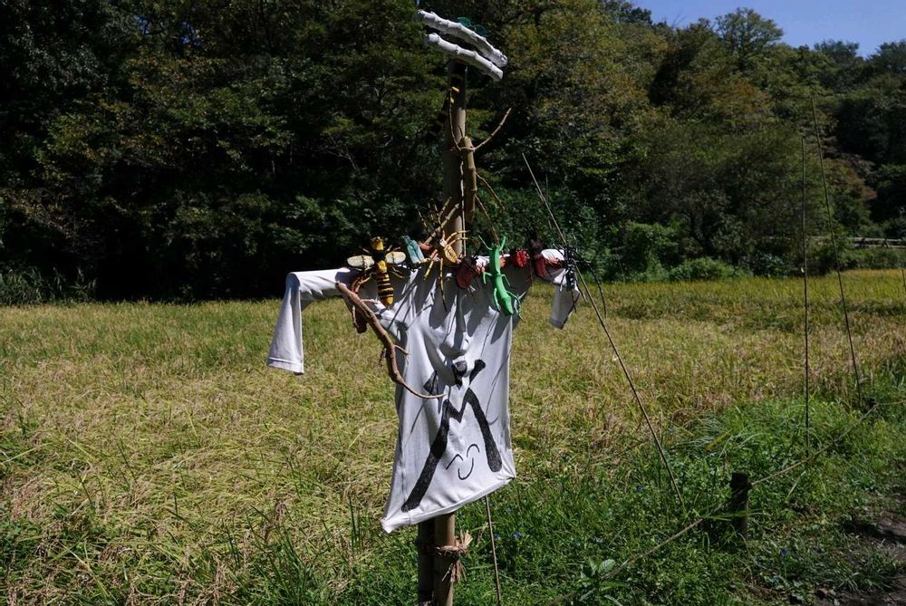 今日のお花 オモダカ(沢瀉) 水田雑草 体験田んぼには収穫の為、たくさんの子供達が来て賑やかでした。 オモダカは花ばかりでなくたくさんの実を付けていました。 4枚目はピンク色の小さなお花、キクモ(菊藻) 地域により絶滅危惧種。 水中で開花すれば閉鎖花になり環境により形態を変えられるらしい。稲刈り中の田んぼは何処も作業の人しか近寄れません。 5枚目、恒例の案山子のコンクール、この案山子は虫好きのグループが作ったのか丁寧にたくさんの虫が付けられ完成度が高いと思いました。