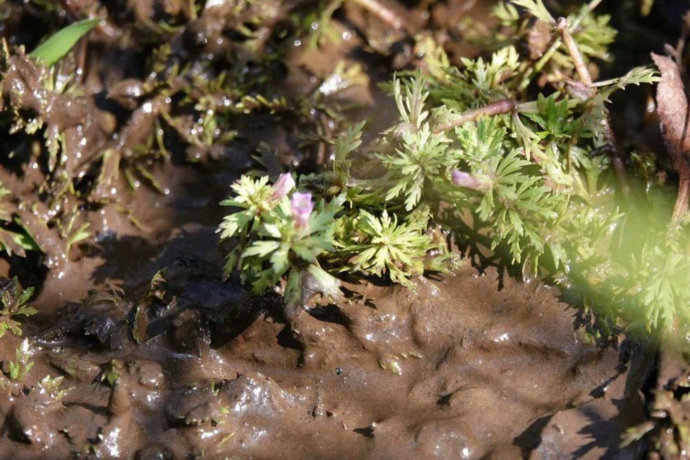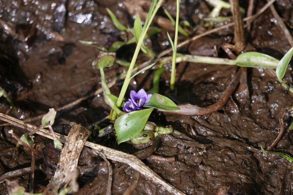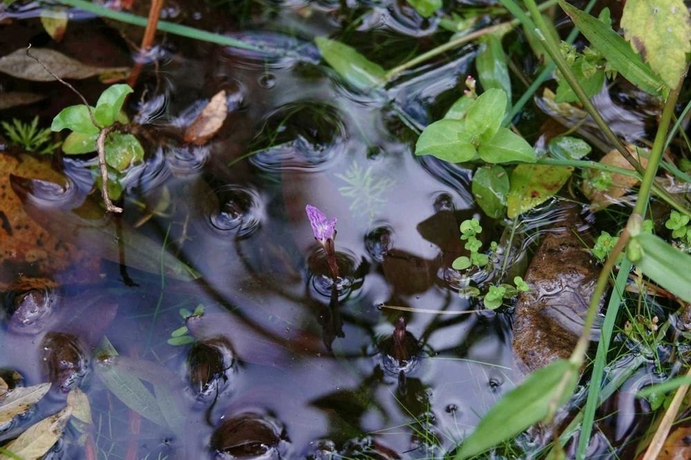 水田雑草 3種 1、2 ミズオオバコ(水大葉子) トチカガミ科ミズオオバコ属 沈水植物 在来種 絶滅危惧Ⅱ類 3 、4 キクモ(菊藻) オオバコ科シソクサ族 水中の葉は糸状に裂ける。水上葉の葉腋に紅紫色の唇型花をつける 5 コナギ(小水葱) ミズアオイ科ミズアオイ属 在来種 先日来た時には稲刈り込みの最中で、田んぼには近寄れず。 既に刈られた田んぼに再び出て来た水田雑草達。昔は嫌われ者でも、今は貴重な植物になりました。 ミズオオバコは田んぼには無く古民家の水鉢に一つだけ花を見せてくれました。