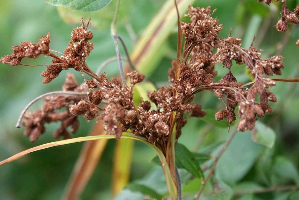 アブラガヤ(油茅) カヤツリグサ科アブラガヤ属 多年草 在来種 (日本固有種) 花期は8〜10月 これは10月の終わりに撮影しました。 高さ1〜1、5㍍ 枝先に4㍉ほどの小穂が数個ずつ、つく。 アブラガヤはアブラガヤ属の中で一番多く見られるが変異も多いという。 平地や山地の湿地に普通に生え、 これは田んぼの近くに在りました。 住んでいる近辺では全く見かけません。