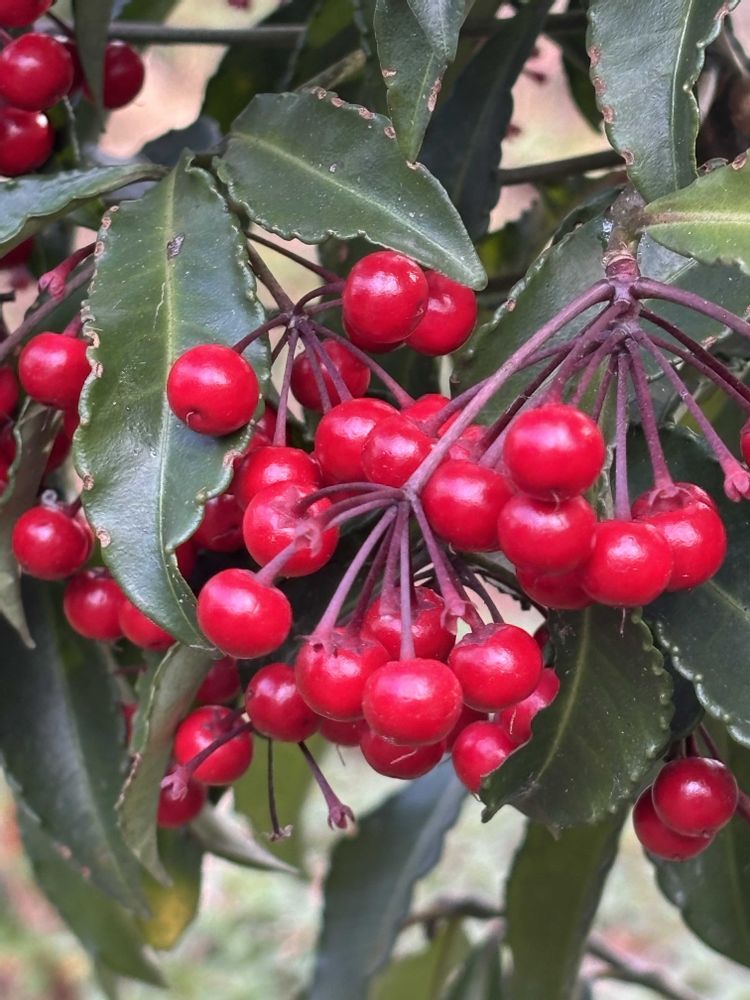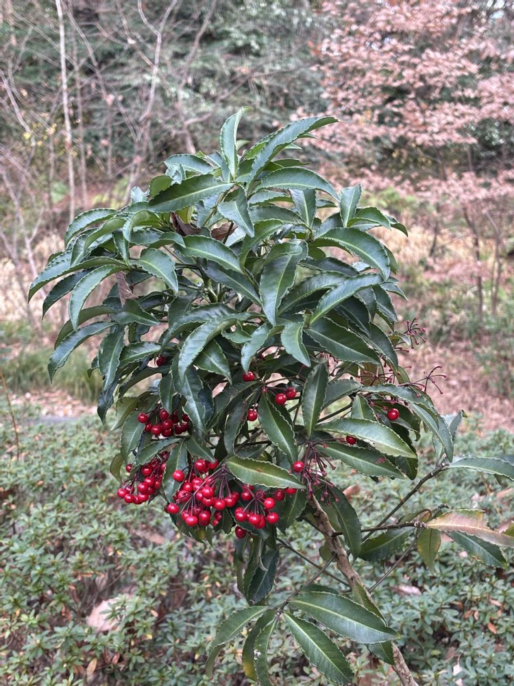 おはようございます。 昨日の神奈川県は、朝から曇って寒い一日でした。天気予報を見ると雪の予報があちこちに。大雪の地域の皆さんには、お見舞い申し上げます。 そんな中、横浜市戸塚区にある俣野別邸庭園に行ってきました。 俣野別邸は、昭和14年(1939)、当時の住友家当主によって建てられた大変モダンな和洋折衷の邸宅です。平成10年まで使用されていたそうです。その後、国の所有となり、平成16年に国指定の重要文化財となり、一般公開に向けた修復工事が進められていましたが、火災により消失し重文指定は解除。平成28年、横浜市により公園施設として再建。現在、俣野別邸庭園として一般公開されています。(Wikipediaを要約) 今は、多分一番花が少ない時期。花の時期にも見学したい公園です。 今日のお花は、万両(マンリョウ)ですね。庭園で見つけたマンリョウと園内の写真を貼っておきます。 見学の途中から雲が少し切れてきました。帰りがけ、遠く富士山が雲の間から見えました。 ①②マンリョウ ③芝生の庭と邸宅 ④富士山 ⑤案内図