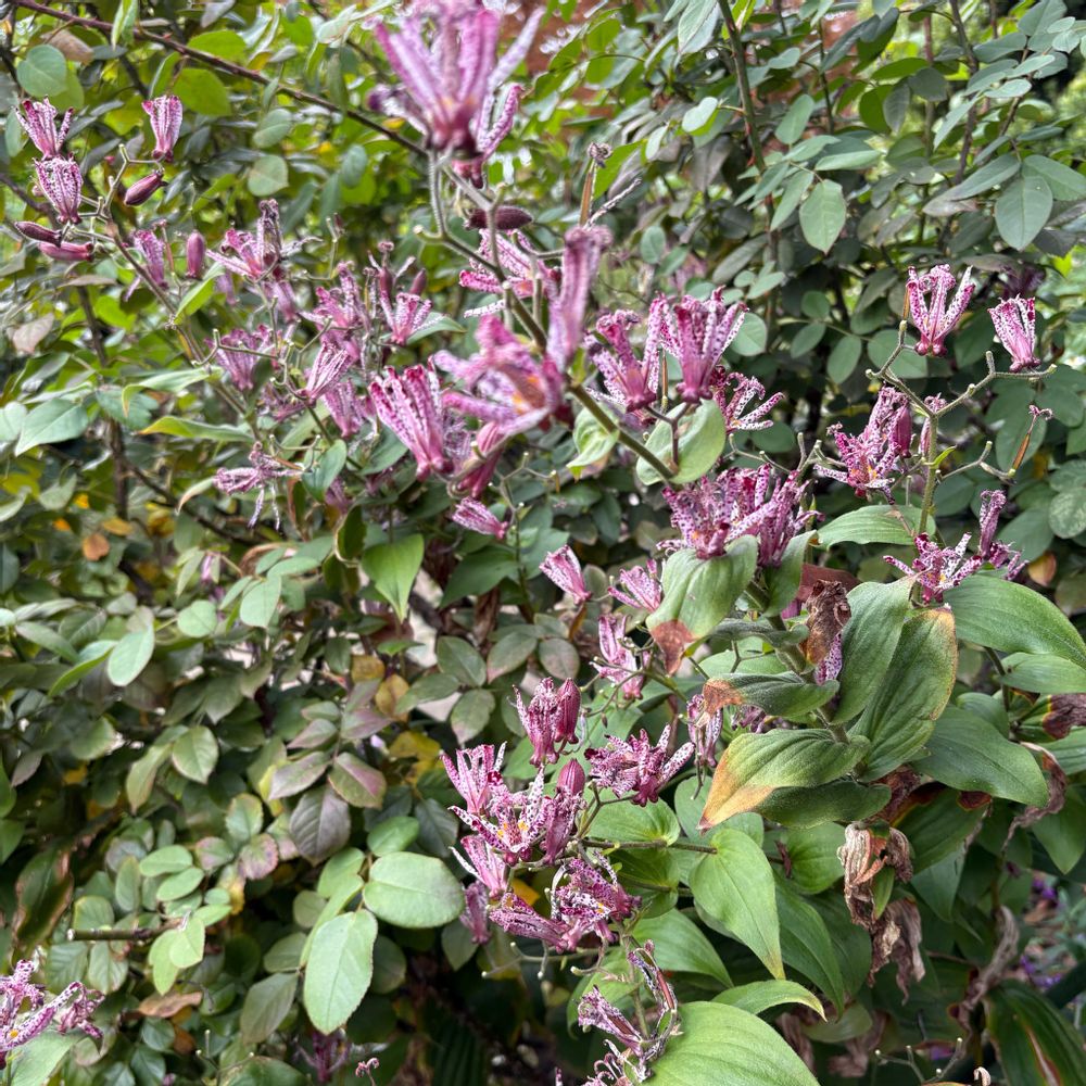 港の見える丘丘公園のバラの中に ホトトギスを発見しました 初めてみました 鳥のホトトギスの胸の模様に似ていることから名付けられたとのこと ホトトギスの胸の模様? それも見たことがないなあ 花言葉には「永遠にあなたのもの」 いいなぁ💕