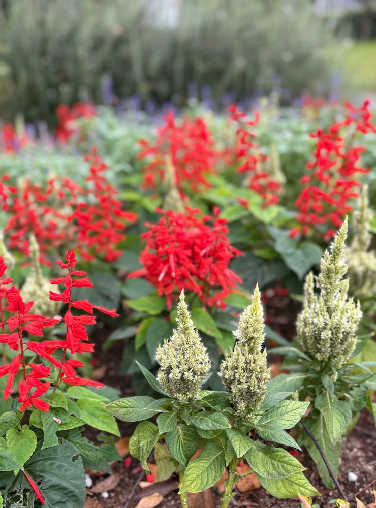 ケイトウ 今日のお花 ①②③ 山下公園内未来のバラ園にて、9月28日GreenSnap Marche YOKOHAMA 2025 に行った際に撮ったものです。秋の植栽が素敵だなぁと☺️💕 ④一緒に咲いていた赤いペチュニアも色鮮やかでした。 ⑤昨日散歩道公園にて🚶きみどり色のケイトウとサルビアの赤が映えていました✨