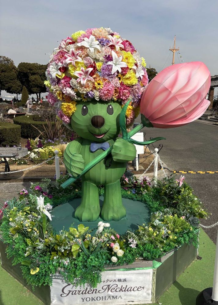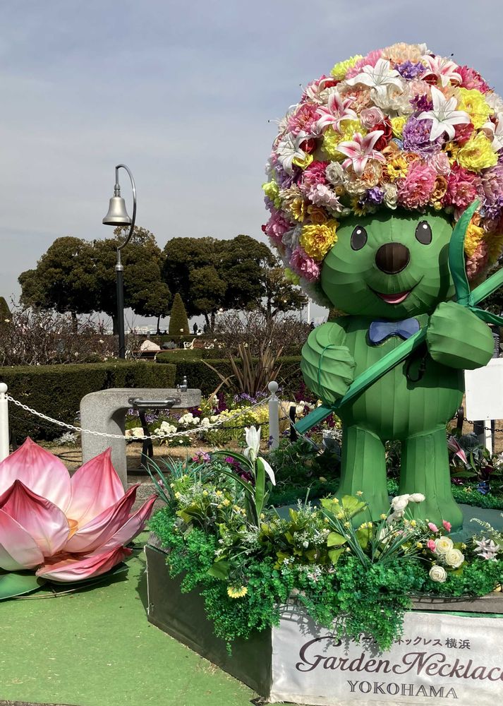 横浜春節祭を祝うランタンがいろんな場所で見られる 山下公園にいたガーデンベア