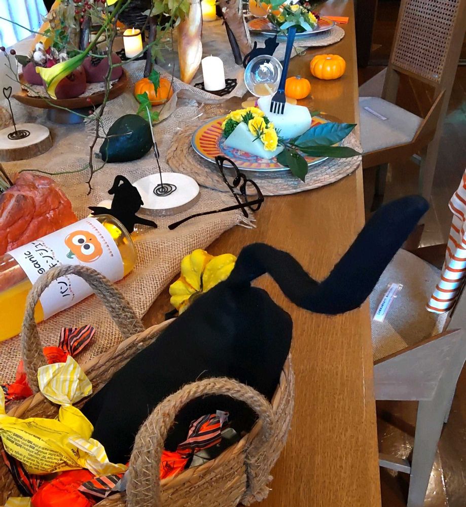おはようございます✨☀️✨❇️🎃 日曜日に行った横浜山手異人館の ハロウィーンです😸💞 魔女の宅急便がモチーフで、黒猫のジジが 食卓でオレンジジュースを倒し、バスケットに 逃げ込むストーリーです🐈⬛🎃