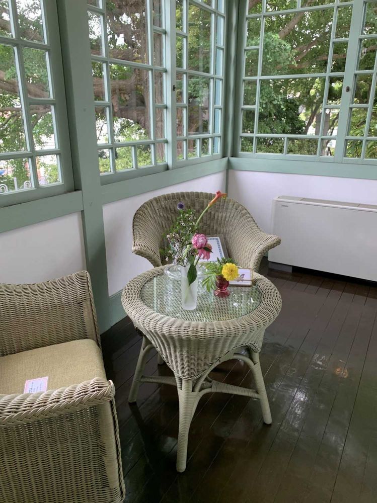 今日の花 ブバルディア ブラフ18番館で見つけました ①②バブルディアを使った生花 ③館内は爽やかなペパーミント色 ④外は白壁に緑色です ⑤喫茶室で本日のケーキ頂きました 花言葉*空想 空想って良いよね 金がかからないし 欲しいものは なんでも手に入るし 美味しいものも たくさん食べられるし ロンドン、パリ、ニューヨーク 有給とらなくても行けるし わたしの隣には いつもあなたがいる でもね 本物のあなたとユニオンで メロンが入っているのにするか ぶどうが入っているのにするか カットフルーツの種類で 悩む現実が好き(﹡ˆ﹀ˆ﹡)♡