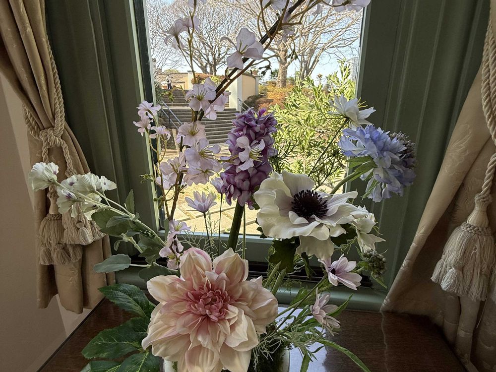 家のユキヤナギが咲き始めました。まだ頑張って咲いているハボタンのドタマでドタマ祭り参加します。山手に行く道でハナニラやオオイヌノフグリ、フクジュソウが咲いていました。山手外交館の家は雛飾りとサクラやさまざまな花の飾り付けがきれいでした。もうすぐひな祭りですね🎎